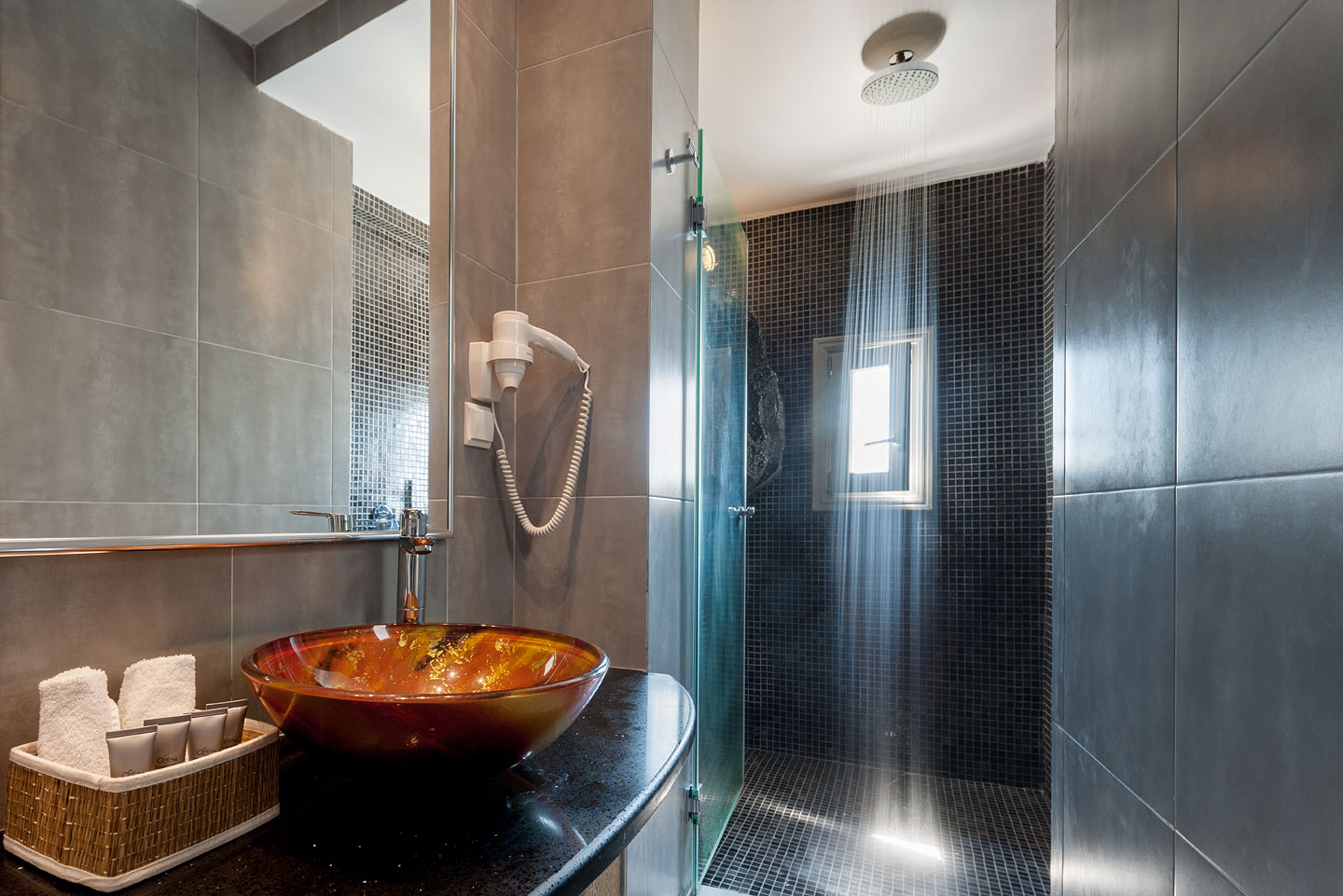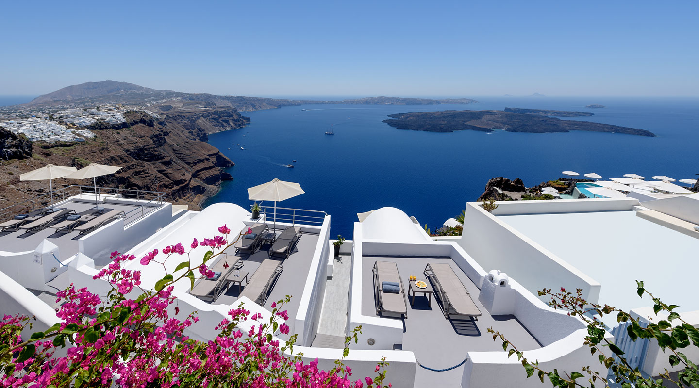Ispod mesta Imerovigli, mirno, eksluzivno na kalderi, sa fantastičnim pogledom na more. Mogućnosti za šoping i zabavu na oko 200 m. Mesto Fira na oko 1,5 km